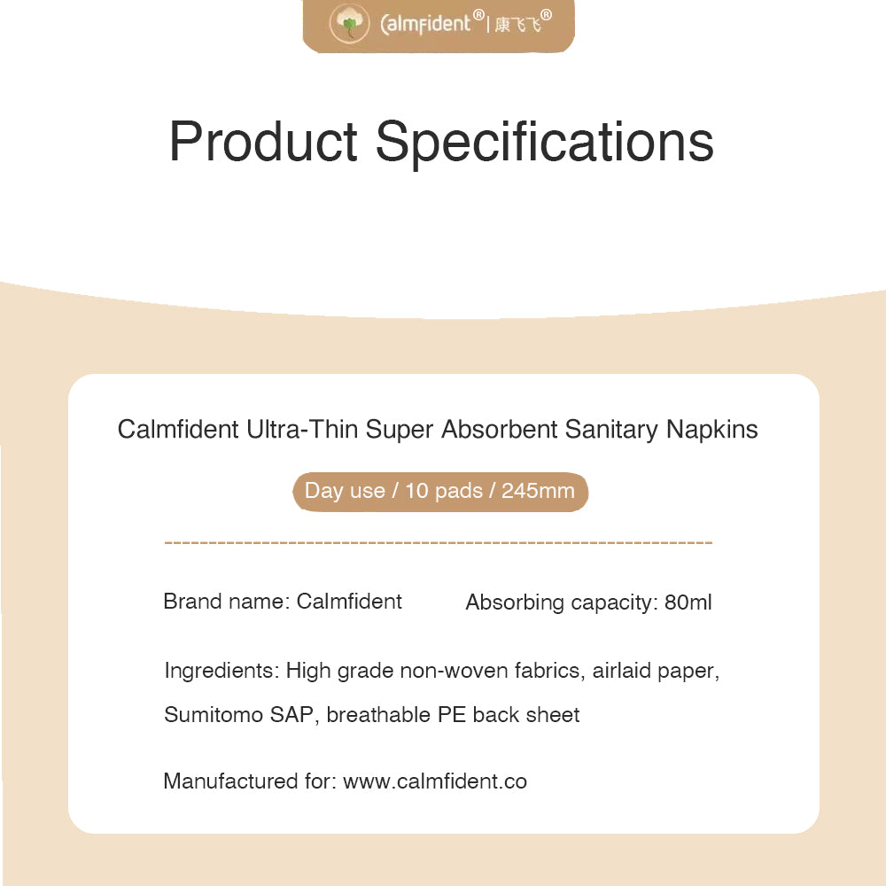 Calmfident Ultra-Thin Day Use Sanitary Pads (10pcs) — 245mm