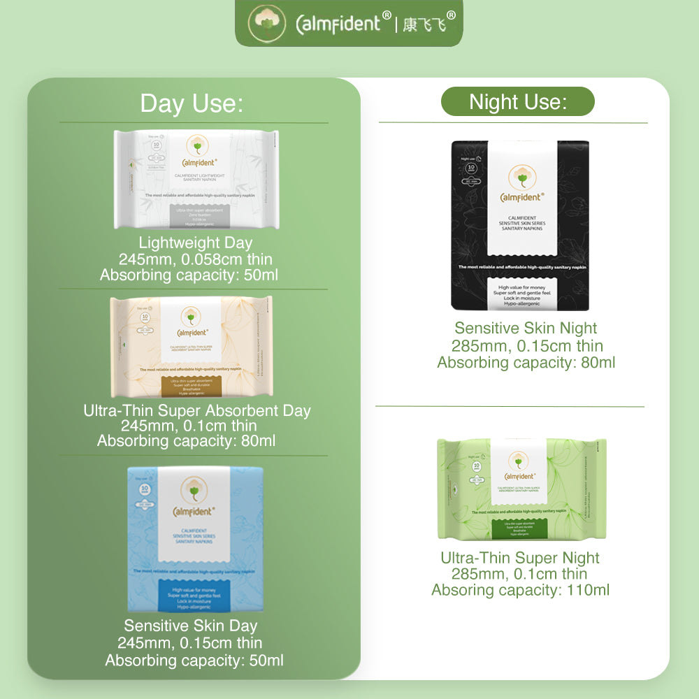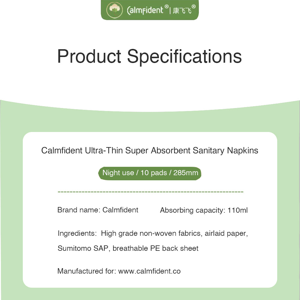 Calmfident Ultra-Thin Night Use Sanitary Pads (10pcs) — 285mm