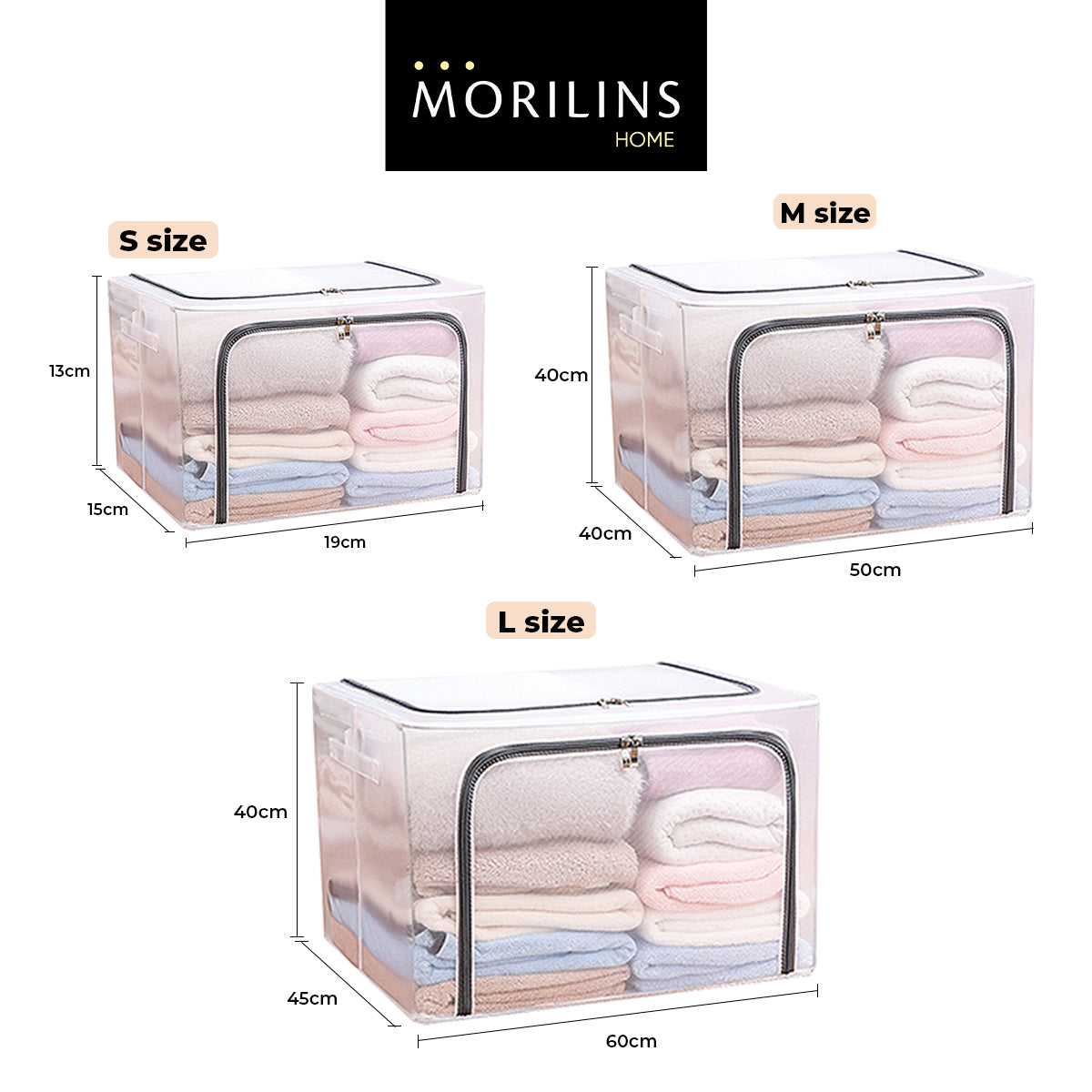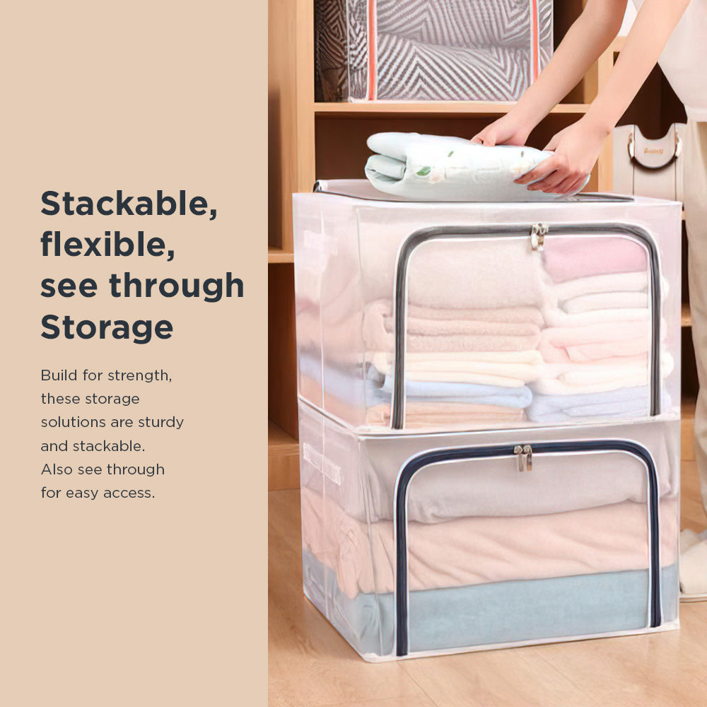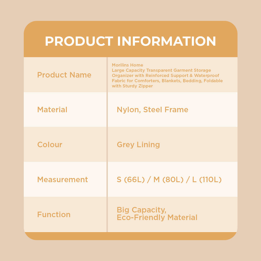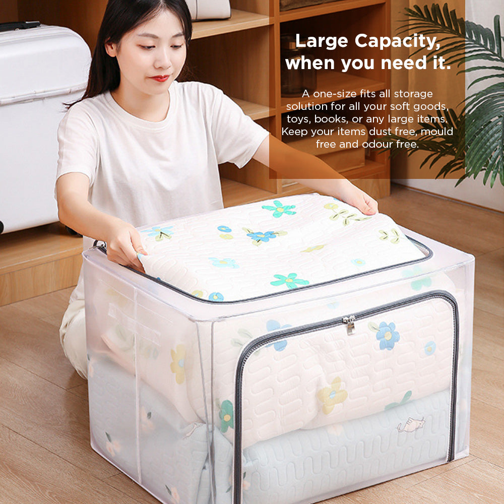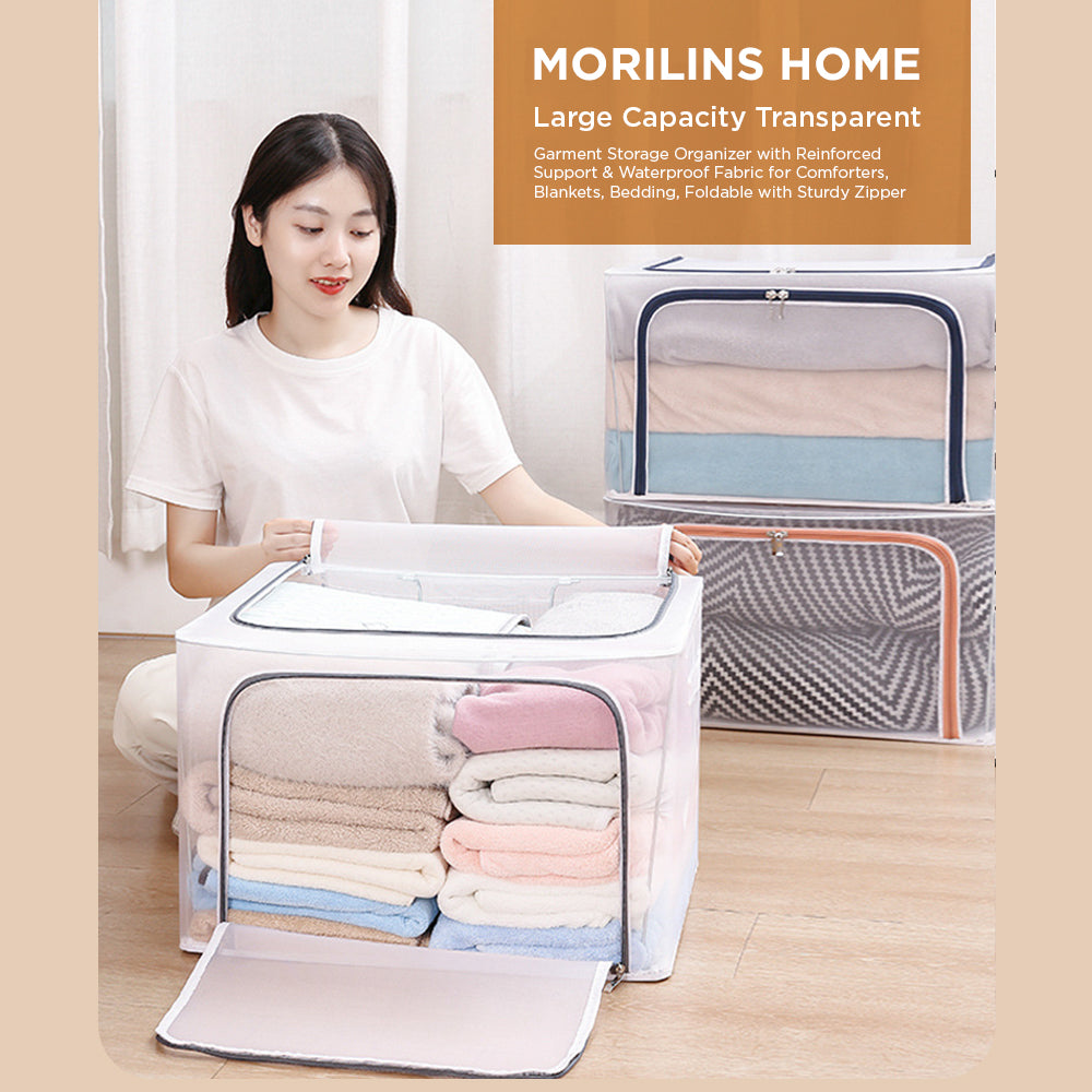 [Morilins Home] Large Capacity Clear Transparent Garment Storage Organizer - Reinforced Metal Support Frame, Moisture-Proof Fabric, & Convenient Dual Access Zipper