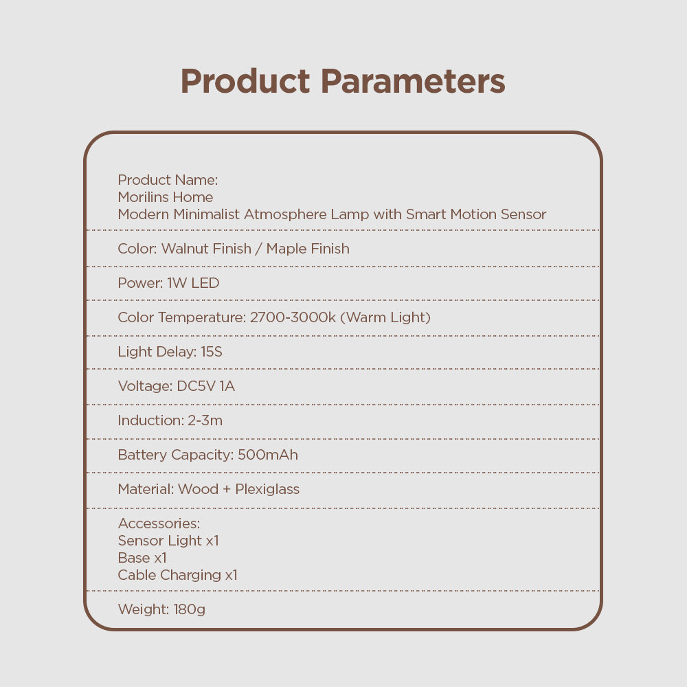 [Morilins Home] Modern Minimalist Atmosphere Lamp with Smart Motion Sensor, 1W LED Night Light, Removable Design, Magnetic with USB Charging