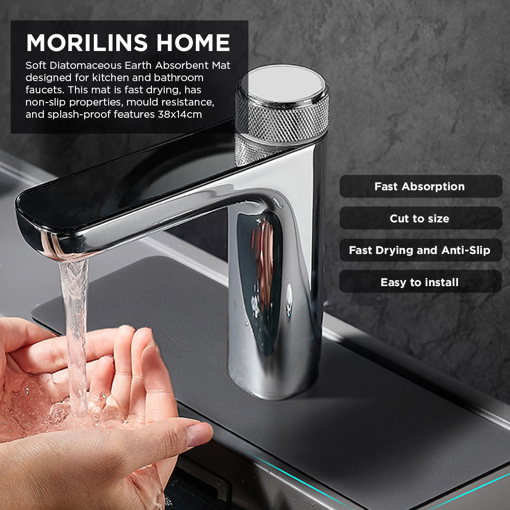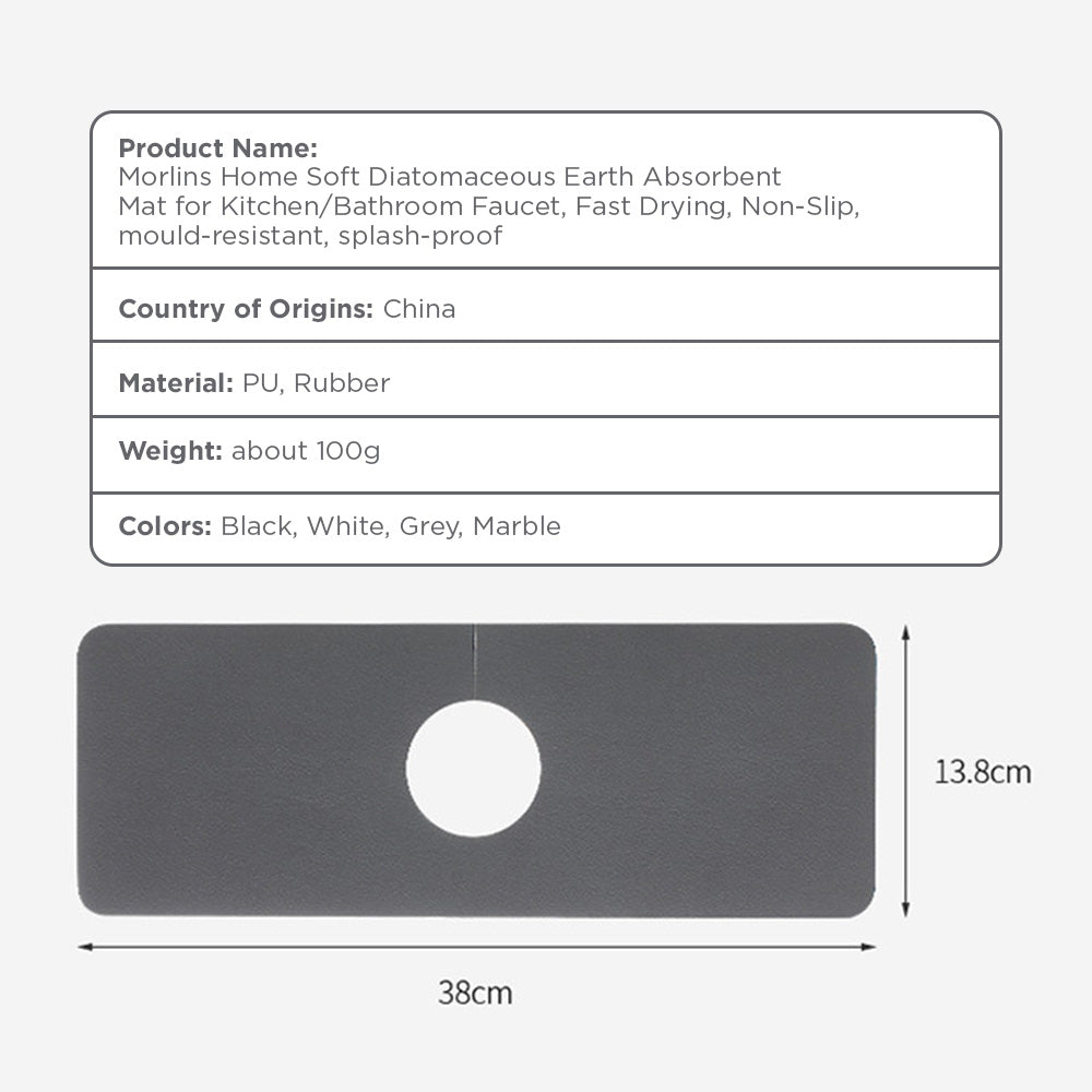 [Morilins Home] Soft Diatomaceous Earth Absorbent Mat for Kitchen/Bathroom Faucet, Fast Drying, Non-Slip, mould-resistant, splash-proof, 38x14cm