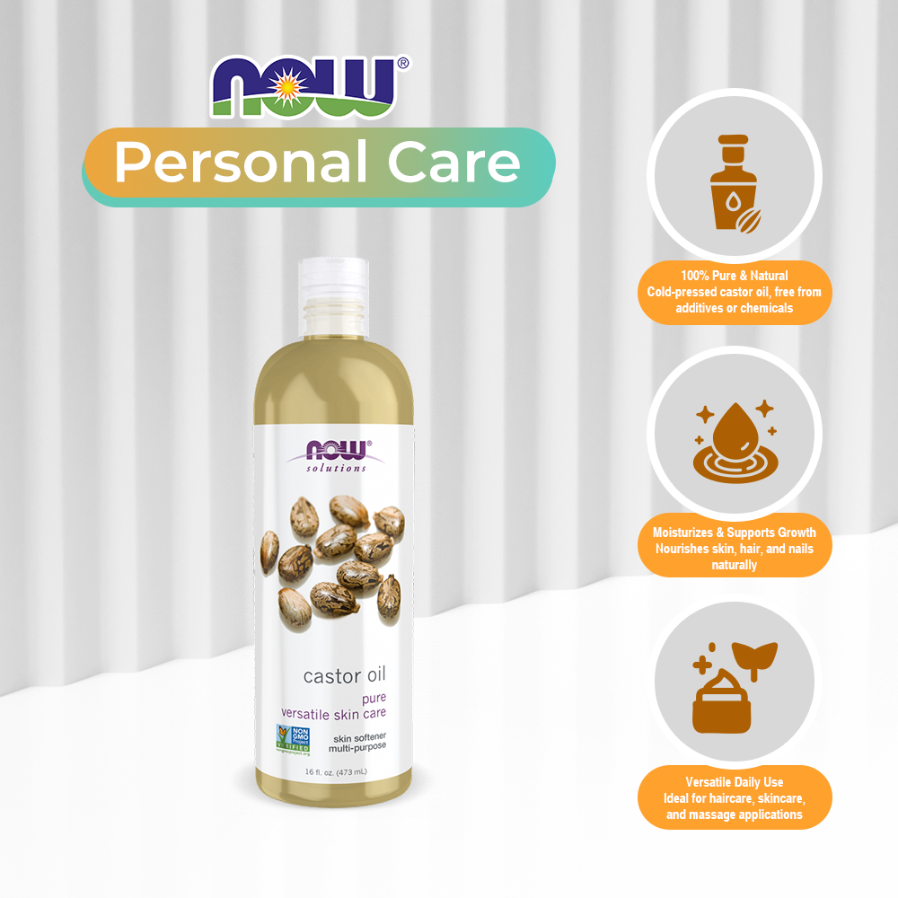 NOW Solutions, Castor Oil, 100% Pure Versatile Skin Care, Multi-Purpose Skin Softener, 16-Ounce (473ml)
