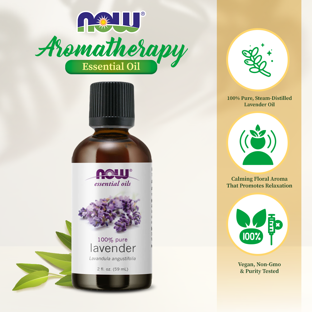 NOW Essential Oils, Lavender Oil, Soothing Aromatherapy Scent, Steam Distilled, 100% Pure, Vegan, Child Resistant Cap, 2-Ounce (59ml)