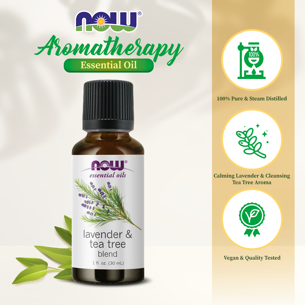 NOW FOODS Essential Oils, Lavender & Tea Tree Oil, Stimulating Aromatherapy Scent, Blend of Pure Lavender Oil and Pure Tea Tree Oil, Vegan, Child Resistant Cap, 1-Ounce (30 ml)
