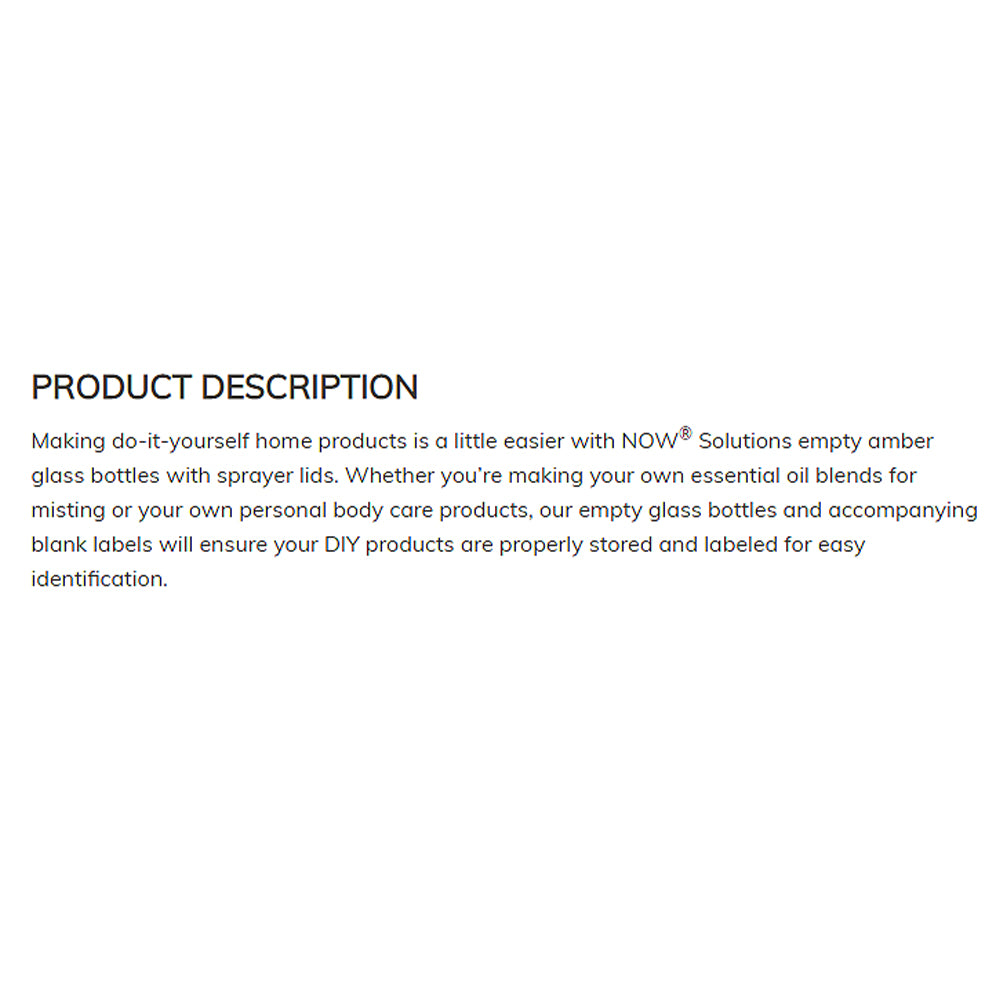 Making your own home or body care products is easier with the NOW® Solutions amber glass spray bottle.