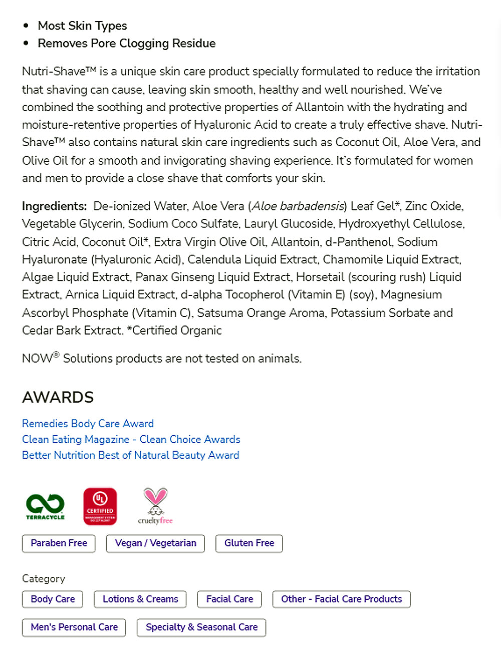 NOW Solutions, Nutri-Shave, Shave Cream, Removes Pore Clogging Residue, Reduces Irritation, 8-Ounce