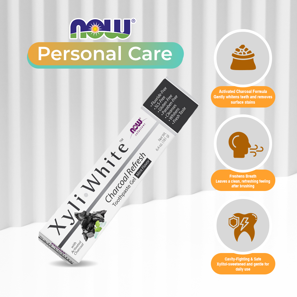 NOW Solutions, Xyliwhite™ Toothpaste Gel, Charcoal Refresh With Activated Charcoal, Cleanses and Whitens, Fresh Taste, 6.4-Ounce
