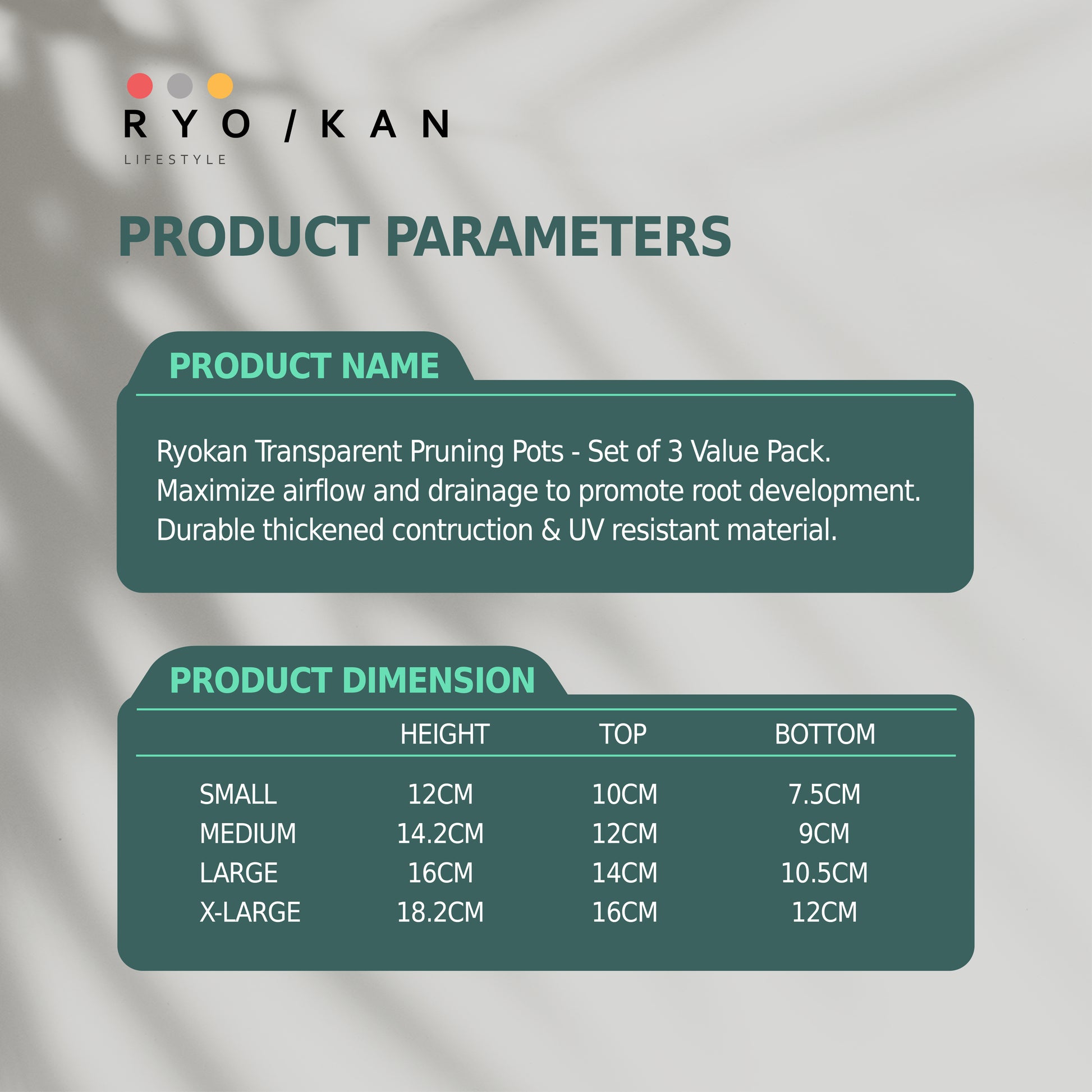 [Ryokan] Transparent Pruning Pots - Set of 3 Value Pack. Maximize airflow and drainage to promote root development. Durable thickened contruction & UV resistant material
